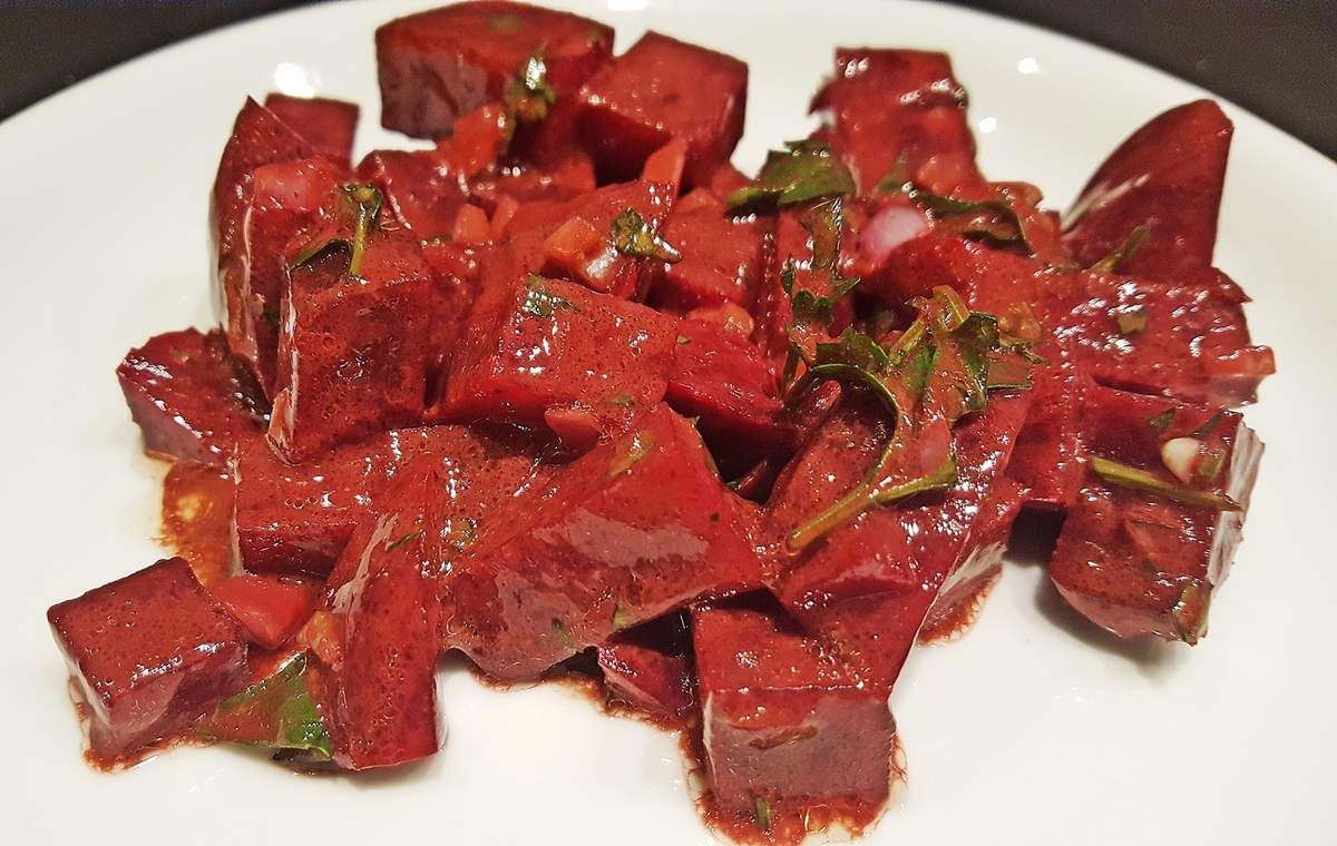Salade de betterave à l'huile de noix et vinaigre balsamique
