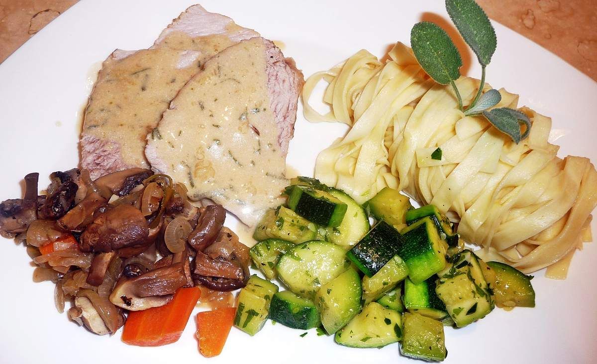 Laissez-vous surprendre par l'alliance de la truffe, des champignons et des feuilles de sauge. C'est vraiment excellent. Accompagnée de tagliatelles fraîches et des Courgettes sautées à l'ail et au persil ... nous nous sommes régalés!
